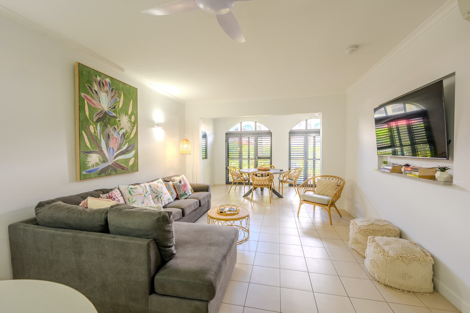 1 Bedroom Courtyard Apartments are perfect for couples looking for a little extra room or small families. Enjoy a spacious 75-105 sqm of space with an open plan living and dining area and a separate bedroom featuring a King bed and TV.