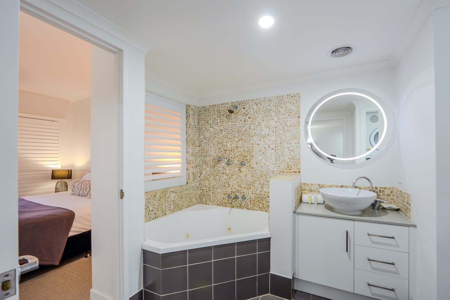 They also include an ensuite bathroom with walk-in-shower, air-conditioning, TV, iron and ironing board, direct dial telephone, bar fridge and tea and coffee making facilities. Free WiFi is available throughout the resort including in-room and common areas.