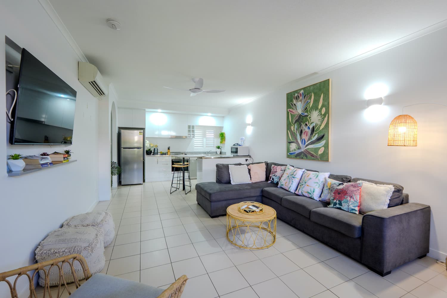1 Bedroom Apartments are perfect for couples looking for a little extra room or small families. Enjoy a spacious 75-105 sqm of space with an open plan living and dining area with a separate bedroom featuring a King bed and TV.